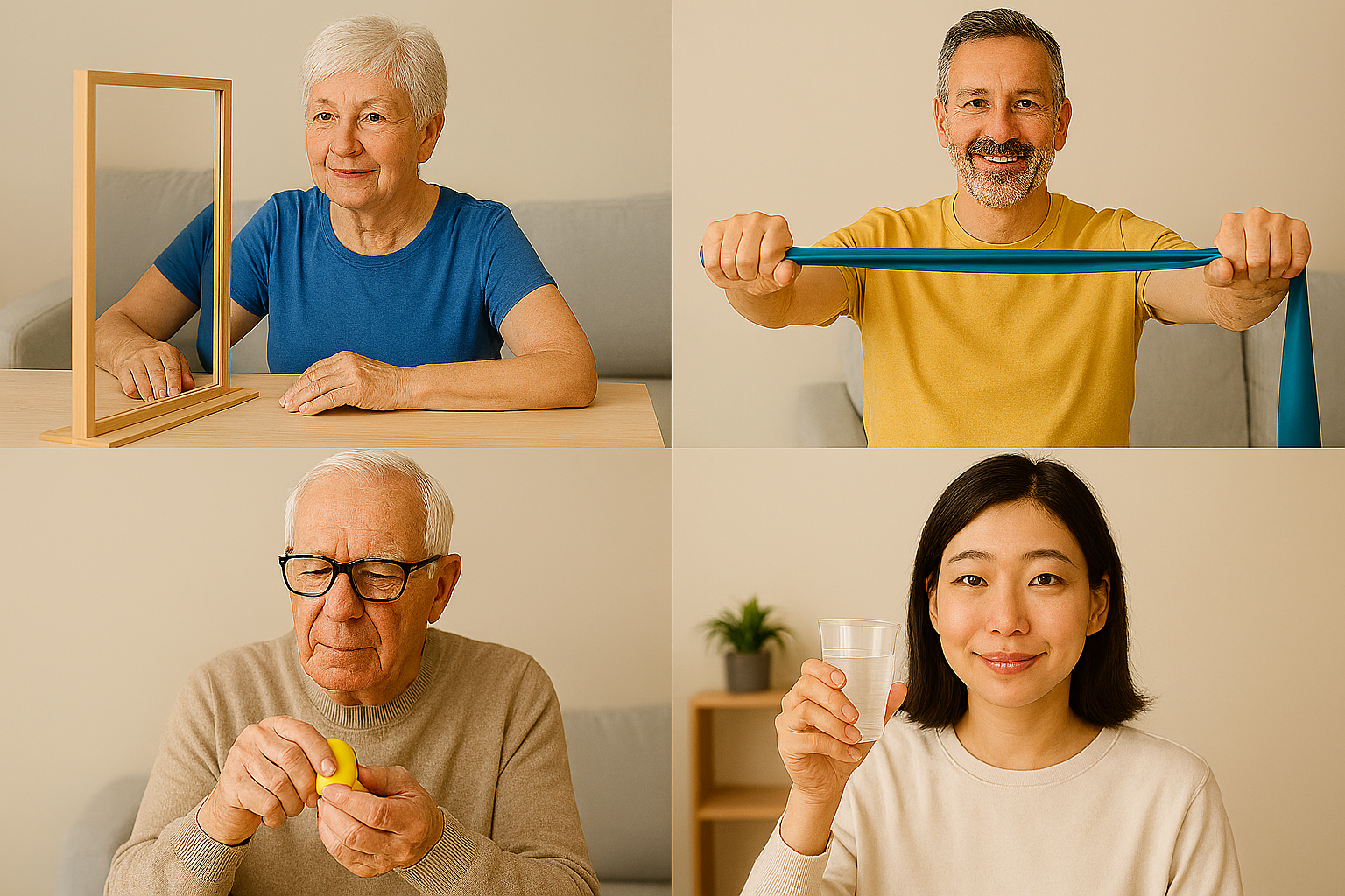 Therapists are able to conduct sessions with the stroke survivor in their own home via telehealth. Stroke survivors are provided with all the necessary therapy equipment that they will require for the duration of their therapy program. Having the equipment at home provides opportunities for the individuals to independently practise the various therapy components and task practise on a daily basis as set by the Therapist, who will then be able to progress the program as gains are made.